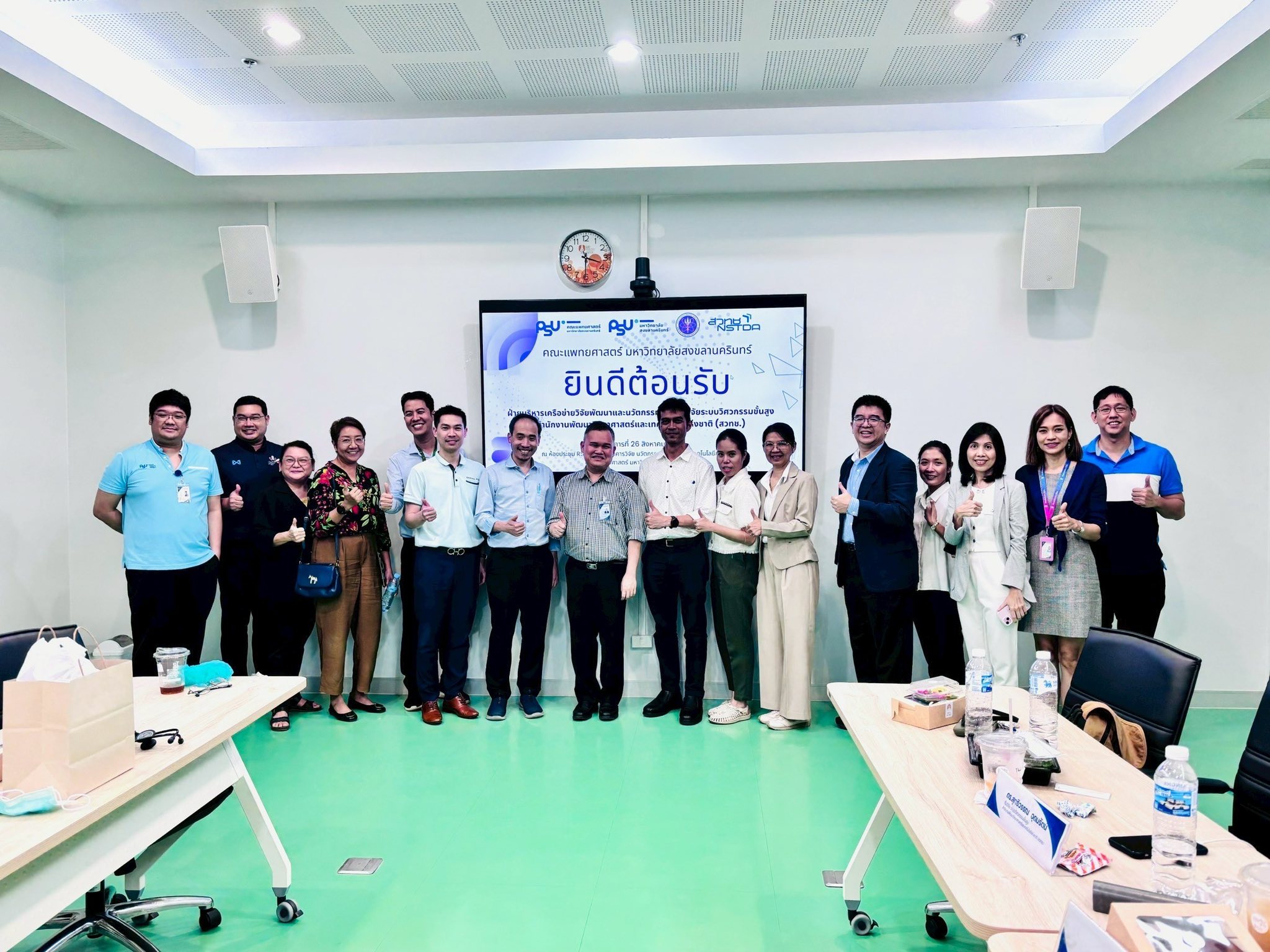 เมื่อวันที่ 26 สิงหาคม 2568 หน่วยสนับสนุนและบริหารวิจัย คณะแพทยศาสตร์ มหาวิทยาลัยสงขลานครินทร์ ร่วมกับฝ่ายบริหารเครือข่ายวิจัยพัฒนาและนวัตกรรม สำนักงานพัฒนาวิทยาศาสตร์และเทคโนโลยีแห่งชาติ (สวทช.) จัดประชุมนำเสนอนวัตกรรม “ระบบจัดเก็บสัญญาณชีพและสัญญาณเสียงของหัวใจแบบพกพา (Digital Auscultation and Online Vital Sign Monitoring Platform : DaVis)”